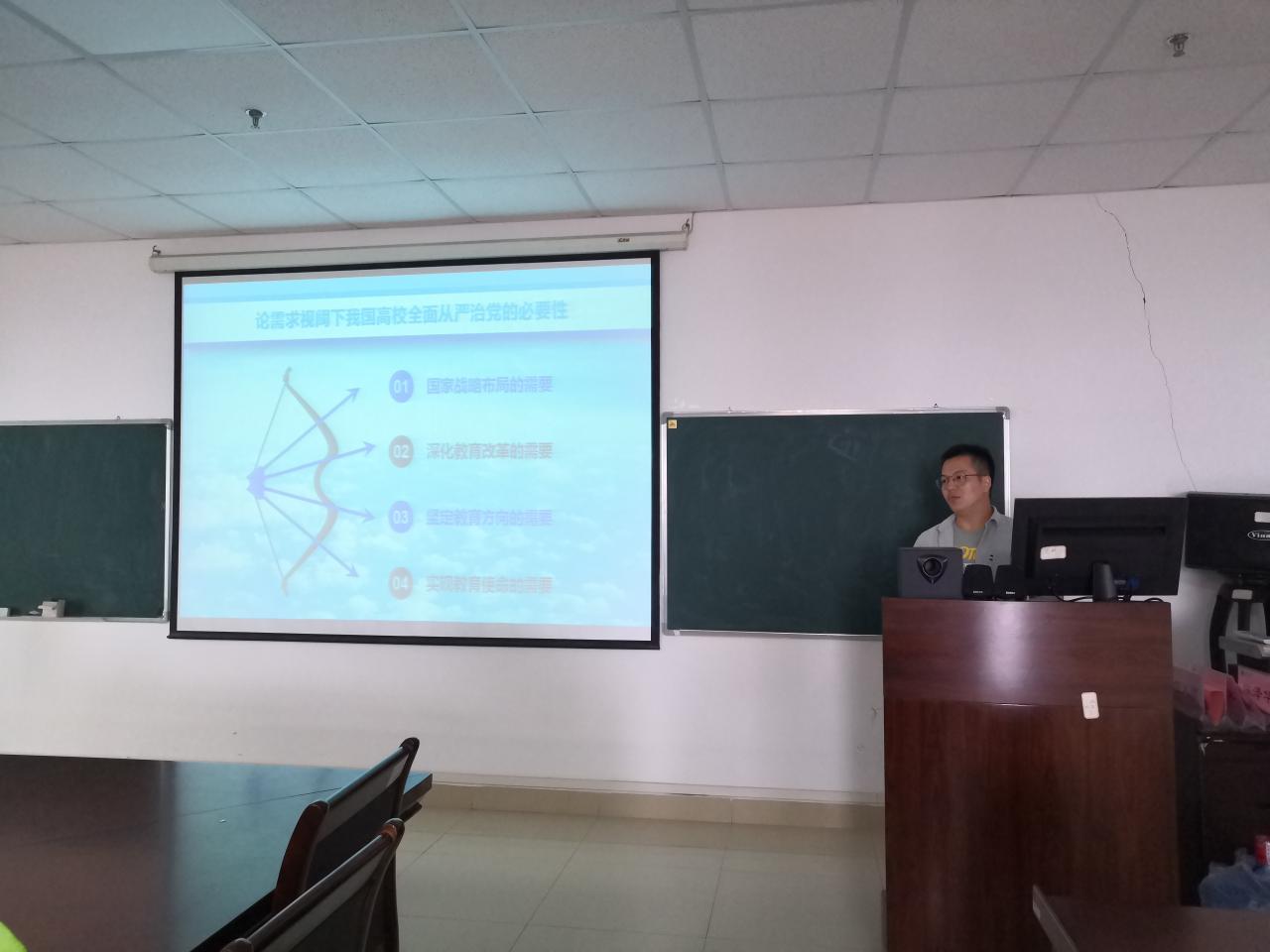 此次活动共分为两大部分:一是由思政QX181班的何波同学做“高校全面从严治党的必要性”的主旨报告;二是由马原QX181班的刘洁讲解“生态文明中的五个正义维度”。