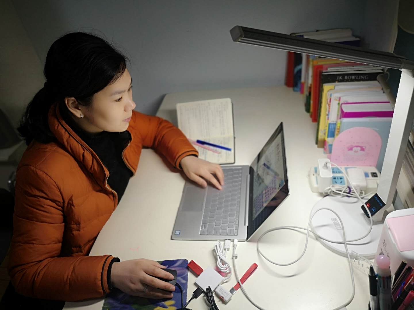 肖老师这学期原本的安排是腾出时间和精力,集中力量写完博士论文,完成博士答辩。一场突如其来的疫情,打乱了很多事情的安排。在直播教学前两周,学院统计具备直播条件的老师,思修组具备条件的老师最少。肖老师这学期博士答辩很关键,错过又是大半年,本身又承担了专业课教学。而且在天门的父母和亲人都出现了发热、高烧不退的现象。经医院诊断,疑似为新冠病毒感染。天门的家人都被隔离,时不时还传来体温升高的消息。想到父母亲人年迈体弱,自己又在荆州,不能前往照料,心中无比酸楚和担忧。爱人又被安排在基层进行防疫工作,早出晚归。全家人的生活,就得靠肖老师一个人来安排。而且,肖老师是老党员,还肩负着社区志愿者服务的工作。用肖老师的话来说,每天眼睛一睁开,就跟打仗一样。