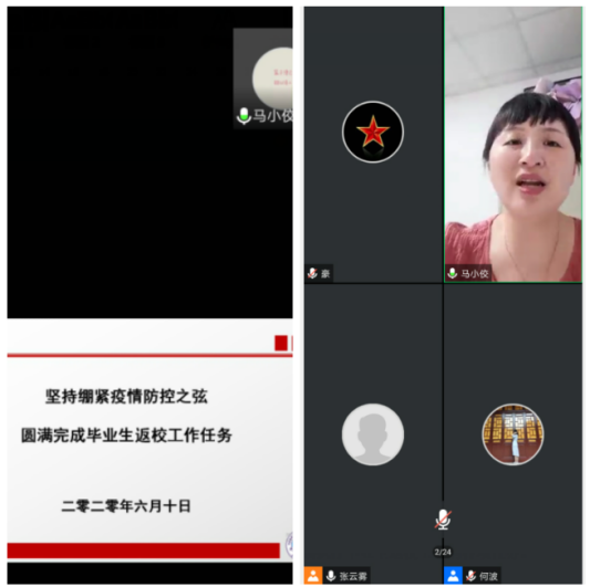 会上,马小佼副书记首先传达了学校毕业生返校工作动员会的相关精神,重点解读了william威廉中文2020届毕业生返校工作实施方案,并就威廉williamhill毕业生返校办理离校手续的组织分工、时间安排、办事流程进行了逐一讲解。辅导员张云雾老师则从学生返校前、返校中、返校后的具体准备工作和注意事项进行了宣讲,提醒返校学生加强安全防范,遵守校纪校规,高效办理离校手续。毕业生们还就毕业生离校手续清单办理流程、在校期间饮食、行李托运等具体事项进行了咨询,学院老师进行了线上解答。