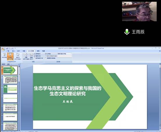 (通讯员 郑亚岚)2020年11月16日晚7:00,william威廉中文“世界哲学日”系列学术讲座第四讲——“生态学马克思主义的探索与我国的生态文明理论研究”在腾讯会议室进行。主讲人是中南财经政法大学哲学院院长、博士生导师王雨辰教授。威廉williamhill全体研究生参加了此次讲座。