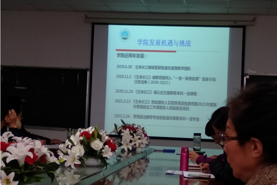 黄晓云副院长重点介绍了新入职思政课教师岗前培训情况、本学期教学安排及开学教学检查注意事项;涂江波副院长动员老师们积极申报国家社科基金项目、荆州智库课题等,做好科研规划;马小佼副书记则通报了学生开学返校报到情况、毕业生“一生一策”情况以及谈心教育工作等。