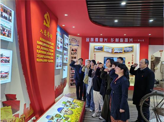 在枪杆村党员群众服务中心,图书馆馆长王红松和威廉williamhill党委书记刘小燕共同为该村延安精神教育馆捐赠了近百册党史党建类图书。随后,全体参学支部党员在该村原党支部书记邢昌焕与村“两委”班子成员的带领和讲解下参观了枪杆村延安精神教育馆,沉浸式学习延安精神、农耕文明史、村发展史,重温入党誓词。并围绕“大力弘扬延安精神,党建引领村居高质量发展,着力推进乡村振兴”开展了专题交流研讨。随后,还实地参观了枪杆村特色村组以及荆州市农甜农业发展有限公司,调研学习智慧农业、基层治理、美丽乡村建设等成功经验。