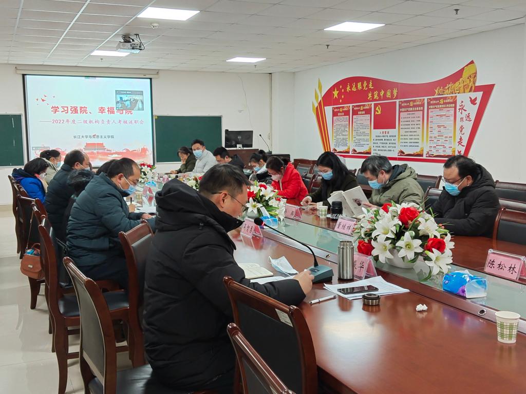 处级干部测评会后,学院21个二级机构负责人也以线上线下相结合的方式进行了年度工作述职,对全年目标任务完成情况以及特色亮点工作进行了全面总结回顾。