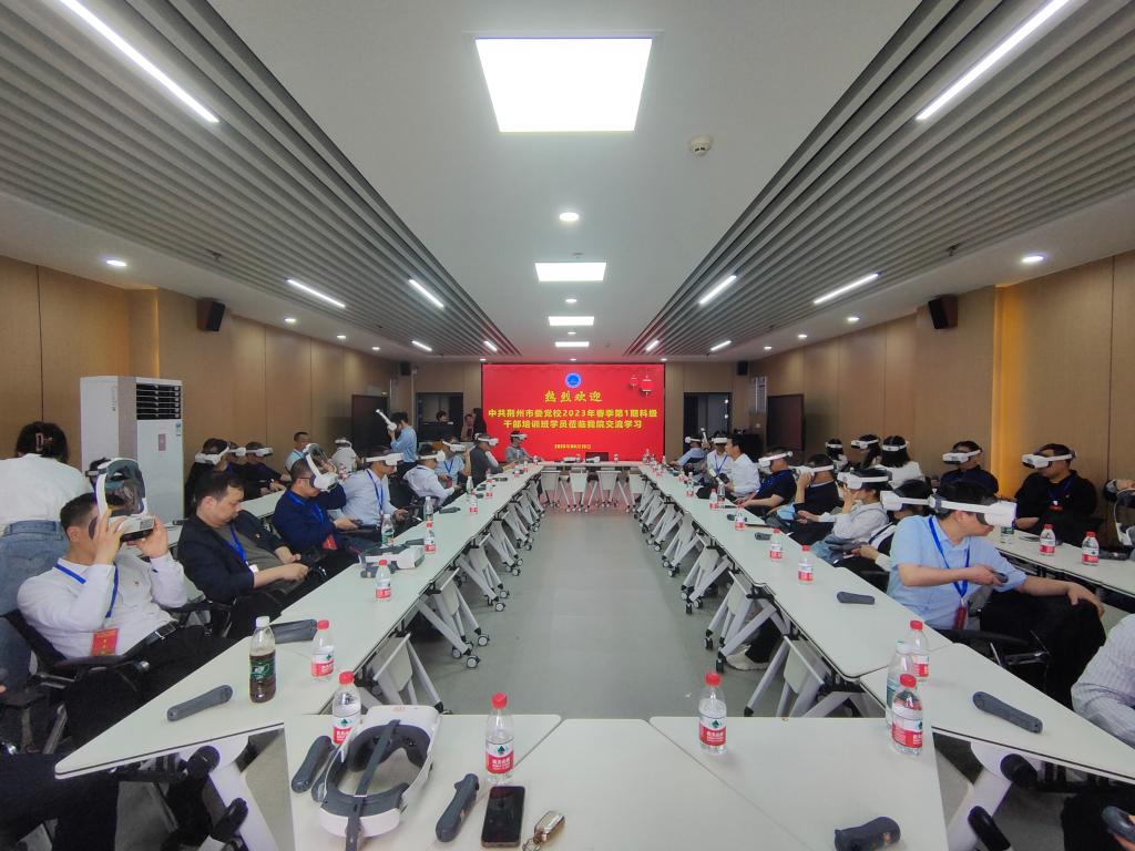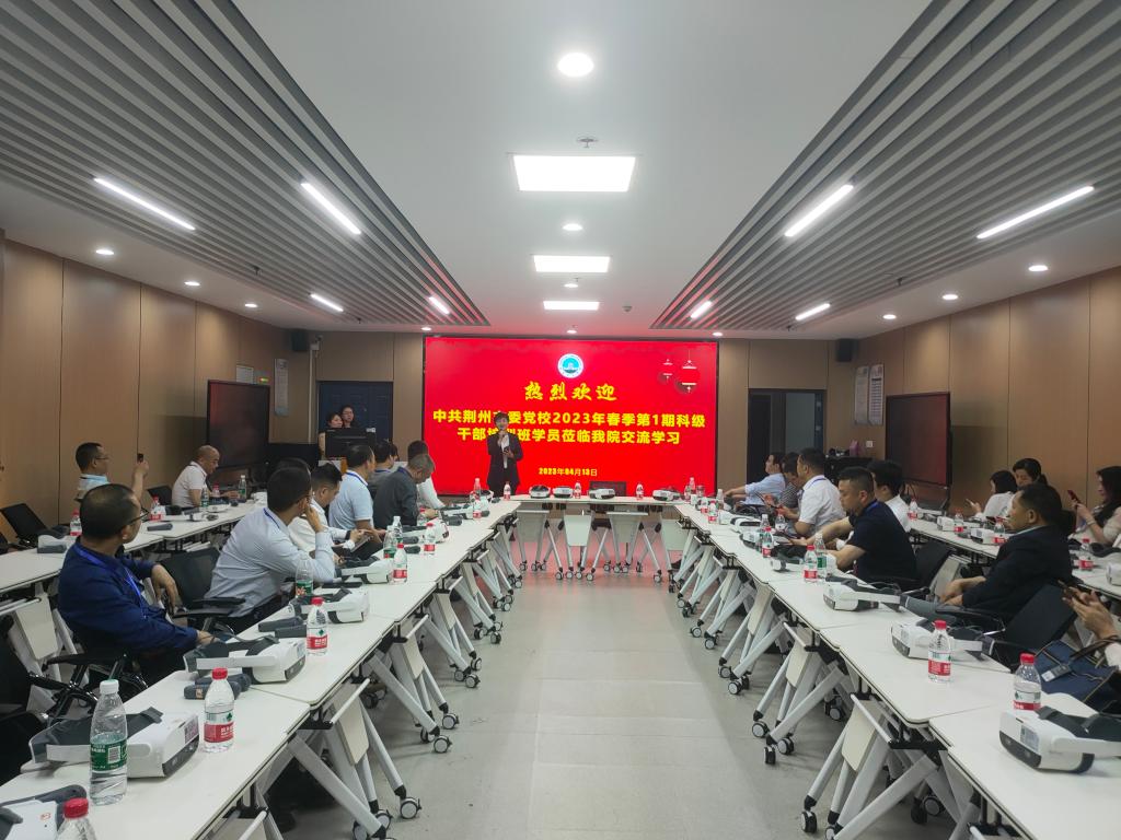 4月13日下午,荆州市委党校2023年春季主体班第一期科级领导干部研修班全体学员来到william威廉中文研学,在我院“生命长江”虚拟仿真实验室沉浸式学习长征精神。