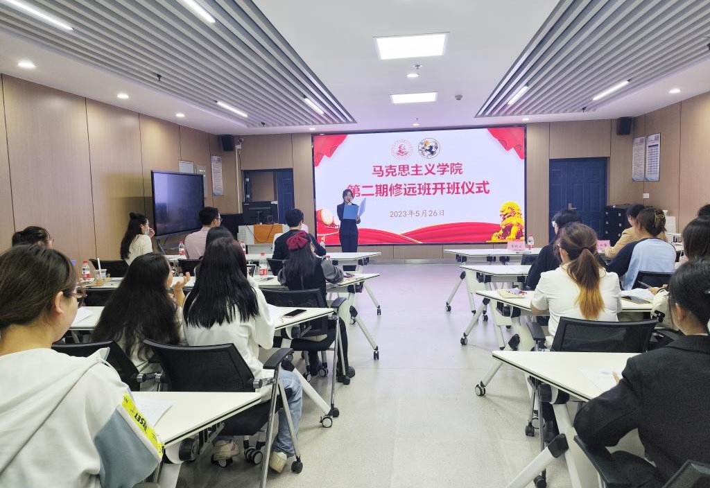 (通讯员 刘若曦)5月26日晚7时,威廉williamhill于文科楼1008室举行第二期修远班开班仪式。学院党委副书记马小佼、副教授黄晓云、学工办主任张云雾、辅导员李敏和全体学员参加开班仪式。