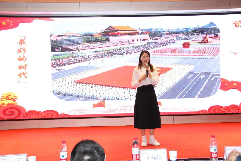 杨鑫同学以《新征程 再出发》为题,声情并茂的讲述了“漫漫教育岁月中,我将不辜负每一个成为道德星辰的机会,做一名给学生带来光亮的人,只争朝夕,为国育才…”