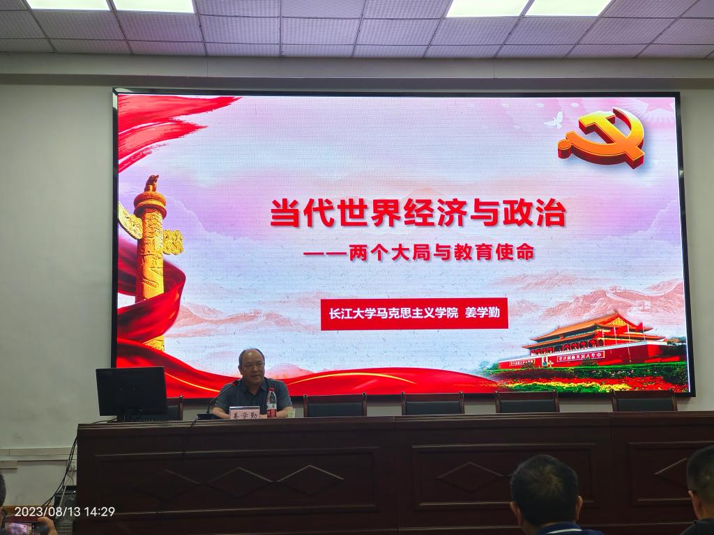 授课专家为威廉williamhill姜学勤院长。姜院长以当代世界经济与政治为题,从百年未有十大变局、中华民族伟大复兴的战略全局、教育使命等几个方面,给我们做了一场精彩的报告,整个报告放眼世界统观全局,深入浅出,结合了教育实践,为我们解析中国与世界经济的关系,包括面临当下严峻的国际形势,中国实施的正确的发展战略和方针政策。整个报告有理论深度,有思想深度,有针对性、实效性,对我们全面而正确的践行教育使命,具有极强的指导意义。