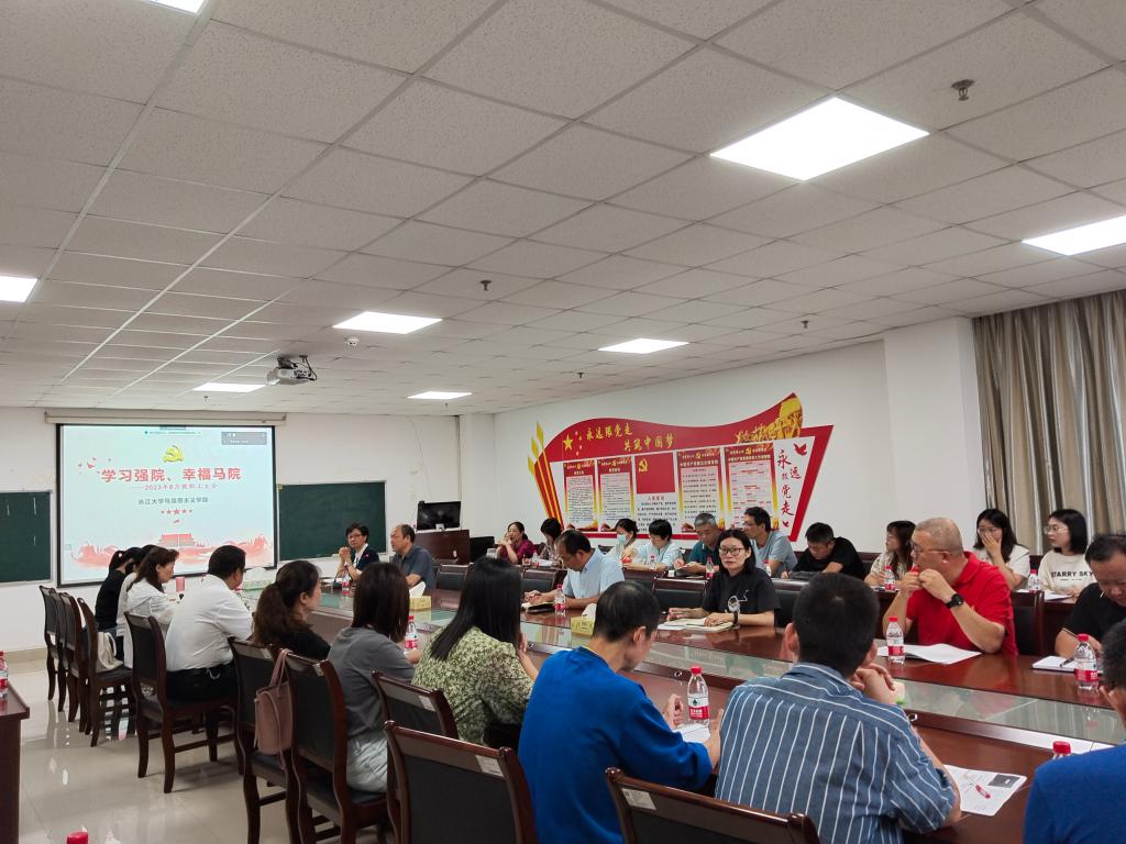 涂江波副院长强调了本学期科研和研究生教学工作安排,张莉副院长讲解了师范专业认证、本科教学评估以及开学初教学工作重点任务,汤慧珍副书记对暑期家访、就业核查及2023级迎新等学生工作情况进行了通报。