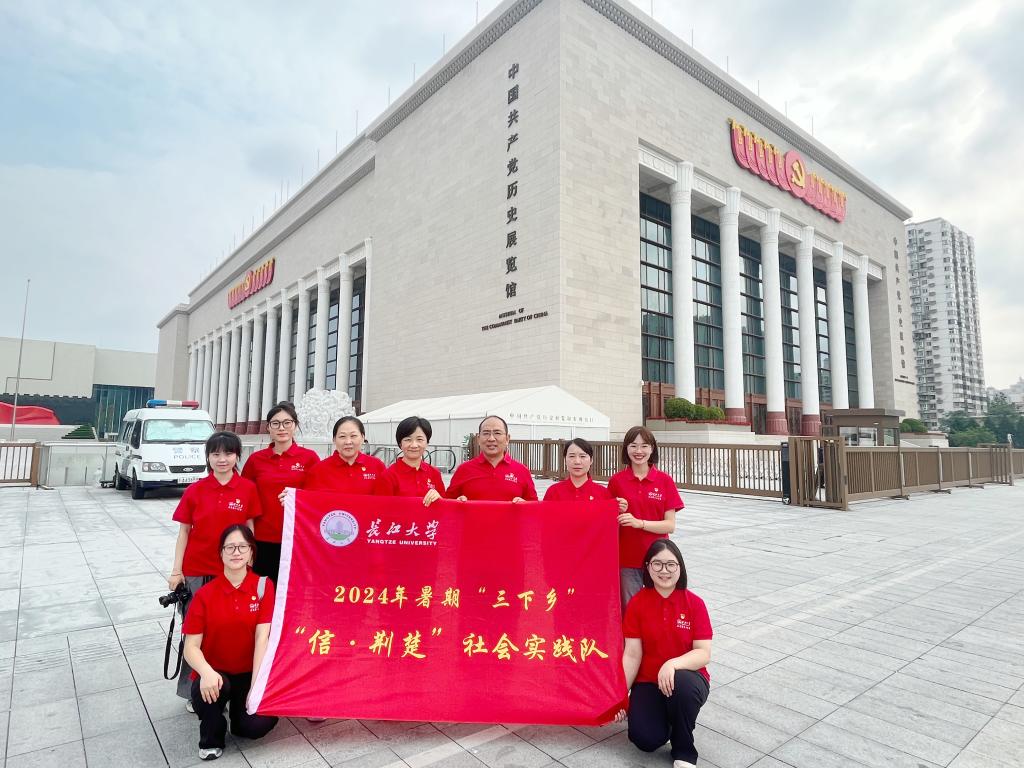 (图为“信·荆楚”暑期实践队队员在展览馆前的合影)