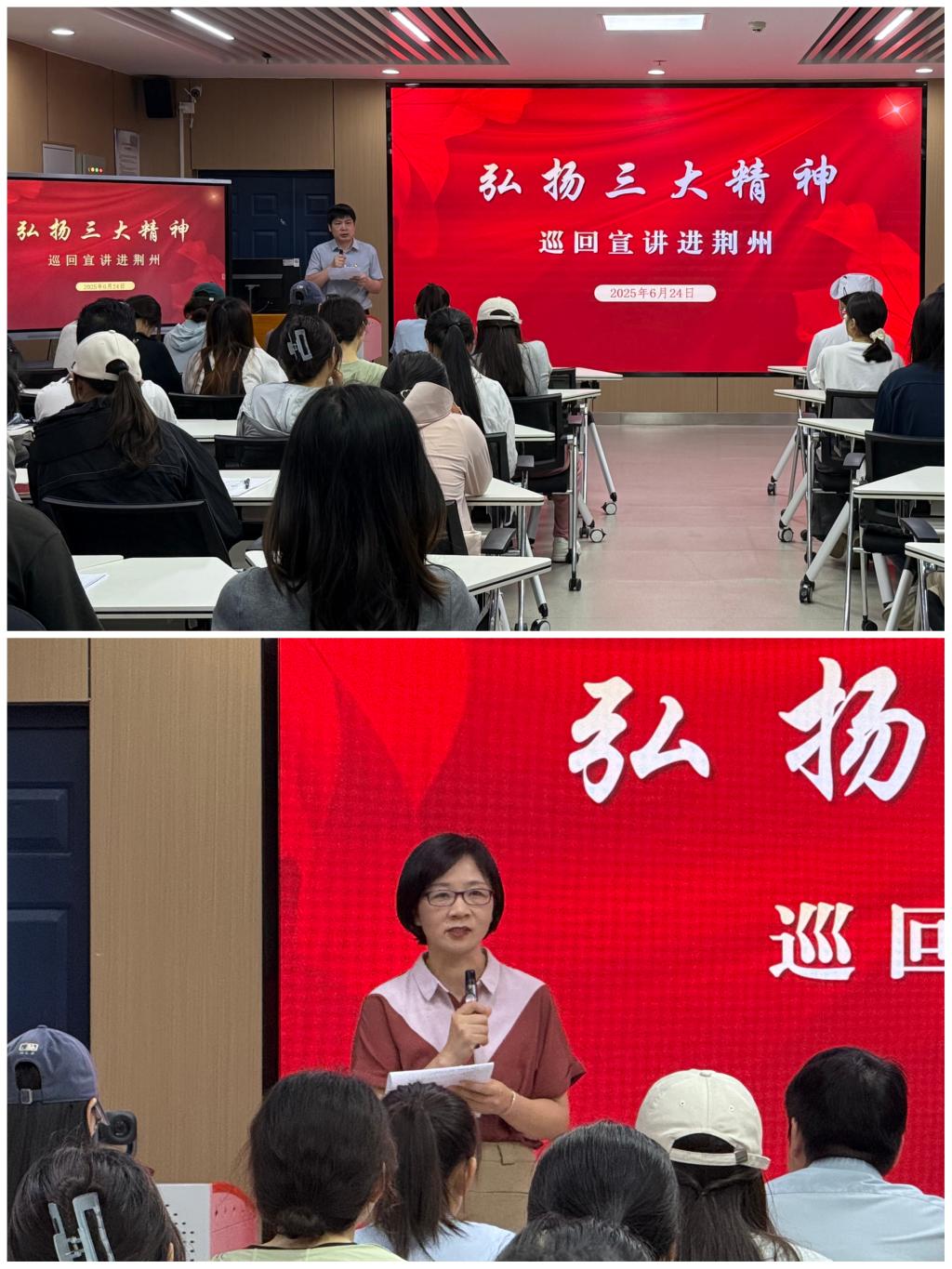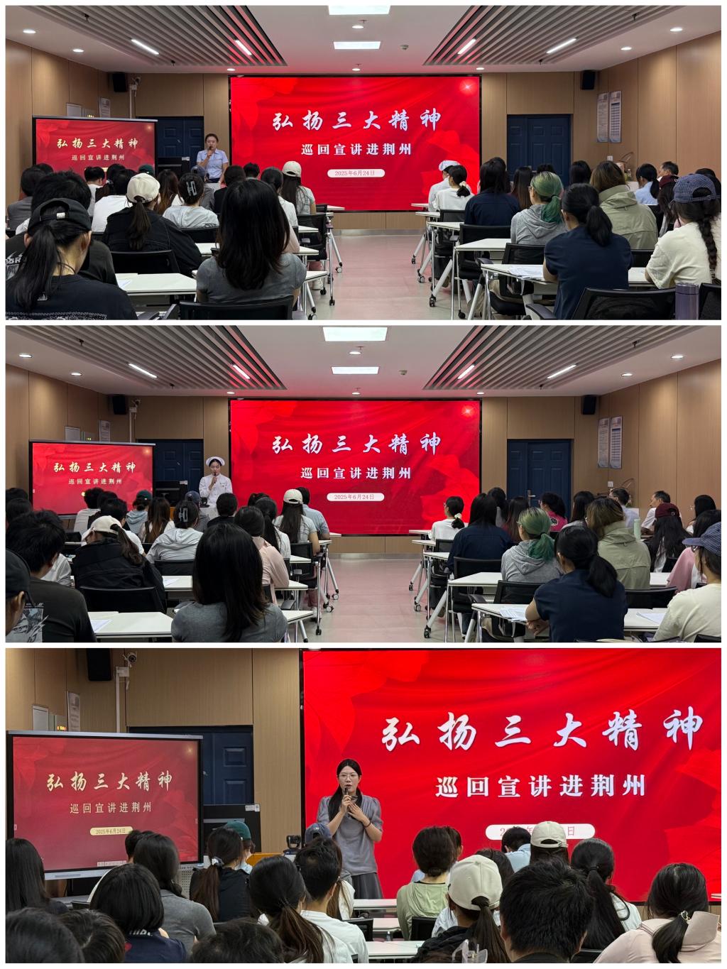 弘扬大别山精神、抗洪精神、抗疫精神,传承和赓续红色血脉。6月24日,由省委宣传部、省委讲师团组建的巡回宣讲小分队走进荆州william威廉中文马克思学院,面向师生开展弘扬“三大精神”(大别山精神、抗洪精神、抗疫精神)宣讲。