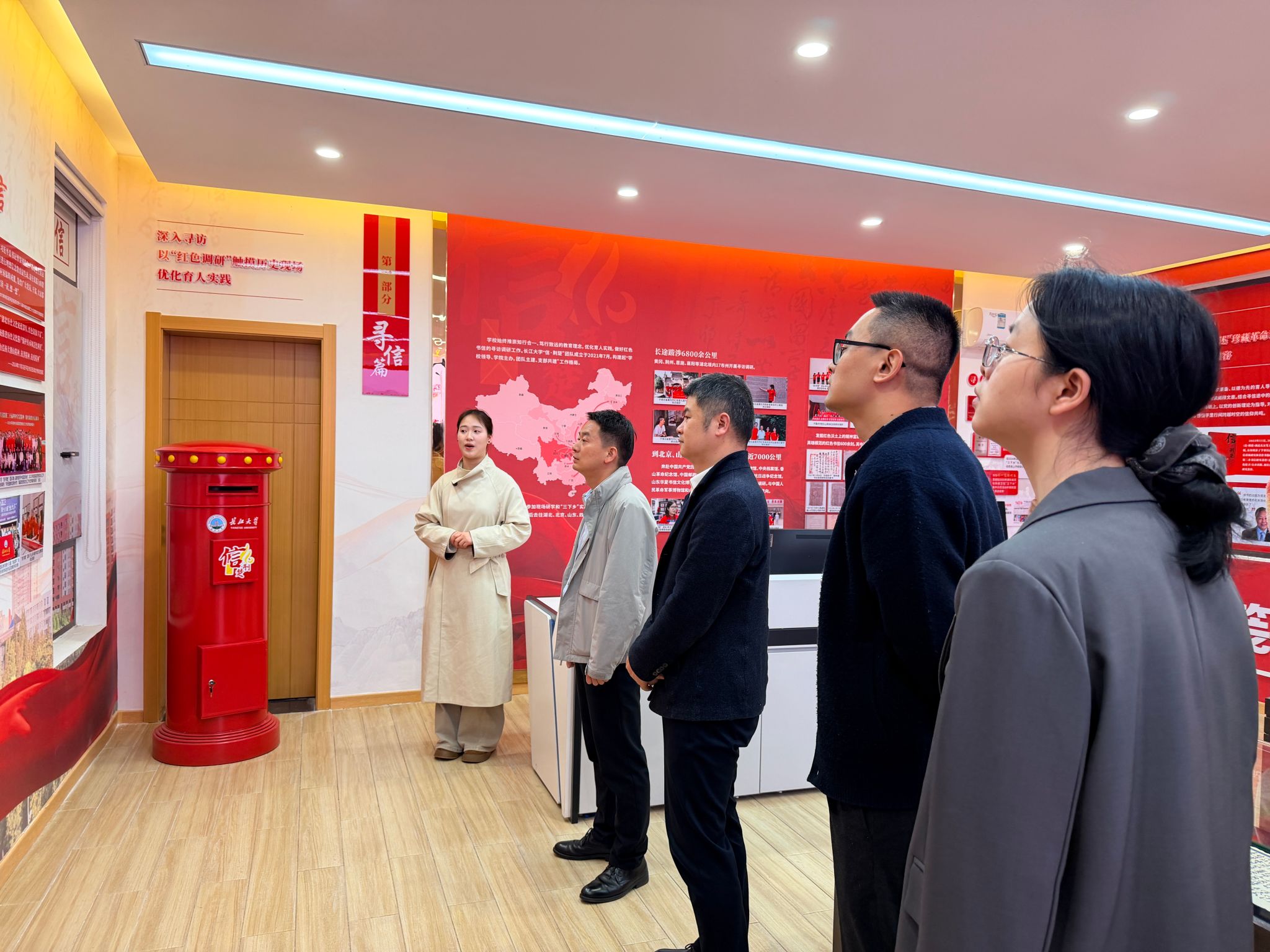 参观过程中,胡俊不时驻足端详展陈的红色书信,主动与讲解员交流互动,细致询问展馆建设运营、书信挖掘整理的情况,并不时上前认真察看书信内容与相关史料,对展馆利用红色书信进行思政育人的实践表示高度认可。