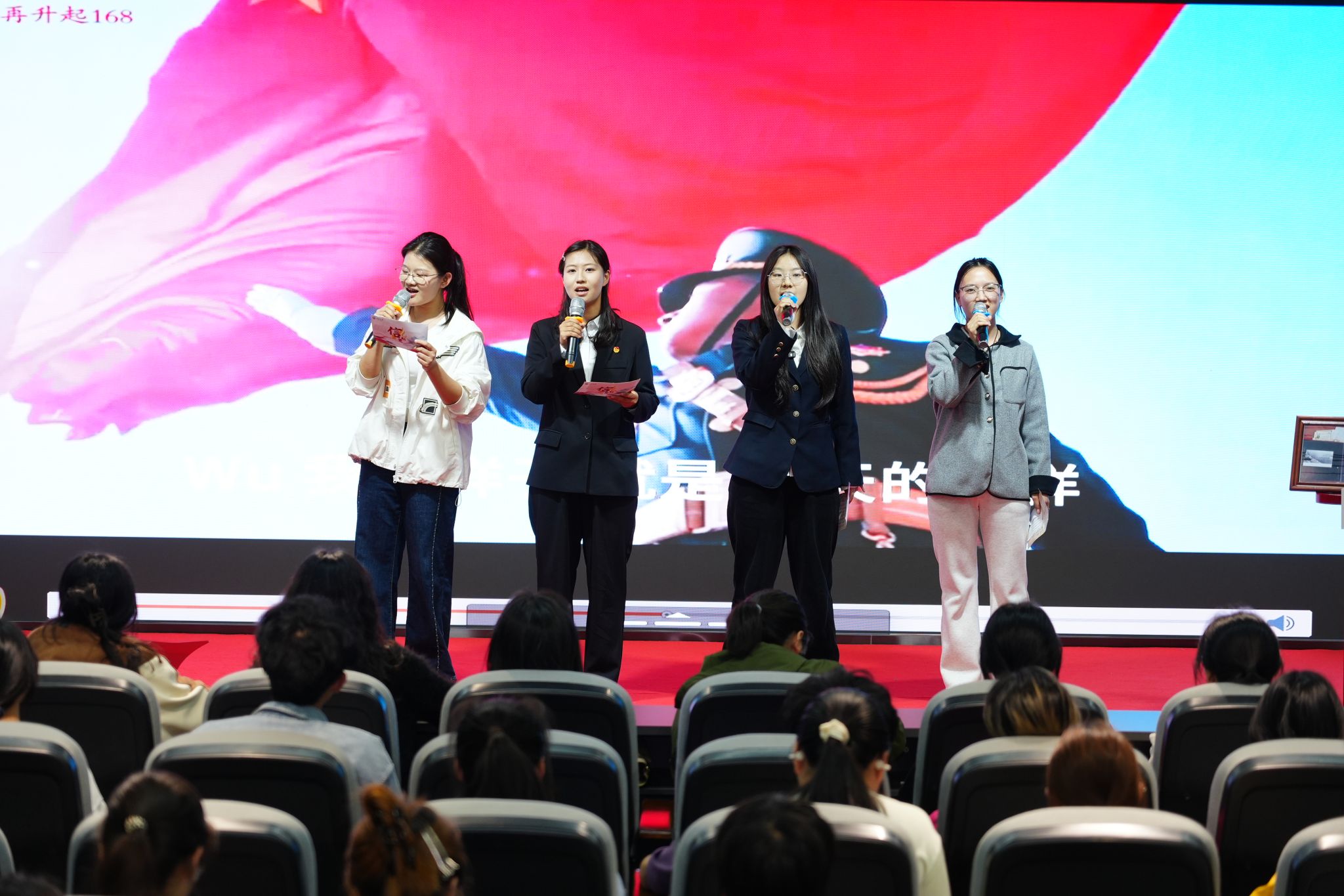 彭宁、王怡霏等四位同学以歌作答,“那未来如何登场,有我担当,定是你只能叫好,那种辉光,护身旁、战远方,有我啊!”嘹亮的歌声回荡在教室之中,也将这份青年对未来的承诺,刻进了在场每一位师生的心底。课程在师生合唱《有我》的歌声中落下帷幕。