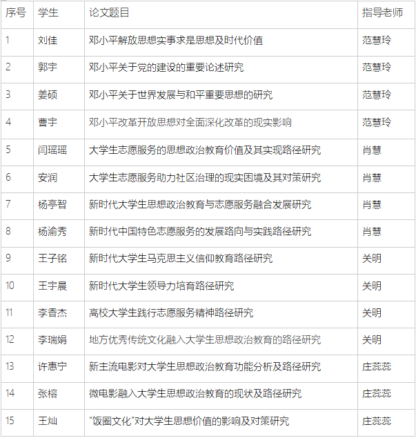 答辩学生(序号即为答辩顺序,组长李敏云):