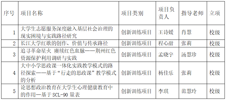 根据学校《关于我校第十七批“大学生创新创业训练计划”项目申报的通知》,以及威廉williamhill《2024年威廉williamhill“大学生创新创业训练计划”项目申报答辩通知》相关安排,通过学生项目申报汇报答辩,专家评审,拟推荐肖慧老师指导的《大学生志愿服务深度融入基层社会治理的现实困境与实践路径研究》等5个项目项作为校级大学生创新创业项目,具体名单见附件。