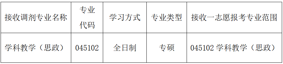根据教育部发布的《2026年全国硕士研究生招生考试考生进入复试的初试成绩基本要求》和第一志愿考生复试结果进行测算,我院科教学(思政)专业(全日制)尚有部分调剂名额,拟接收调剂生源,欢迎广大考生报名申请调剂至我校学习深造。现将有关事项公告如下: