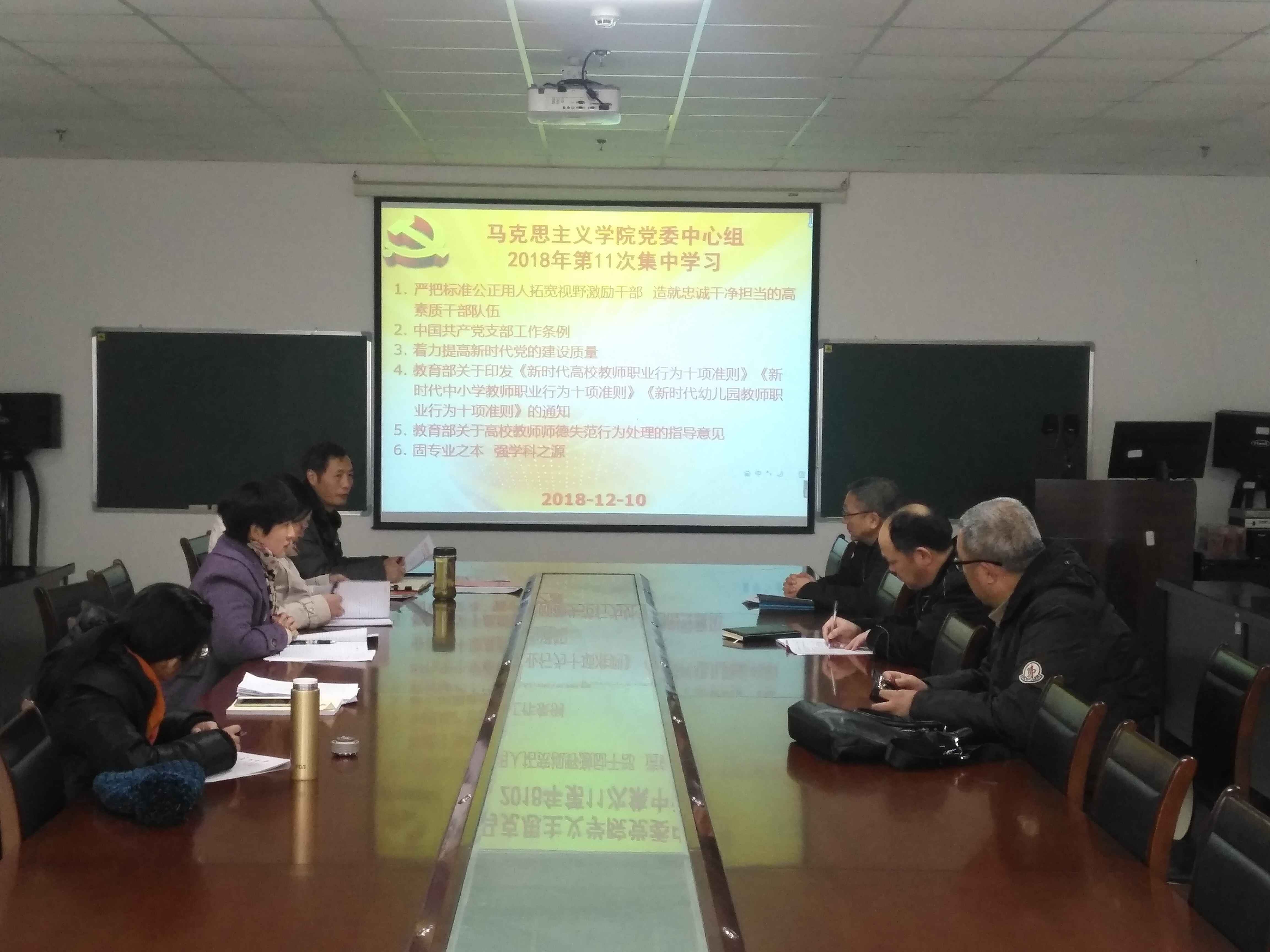 威廉williamhill于2018年12月10日在文科楼1104室举行了党委理论学习中心组第十一次集中学习,党委理论中心组成员及各支部书记参加了学习会,会议由党总支书记吴智勇主持。