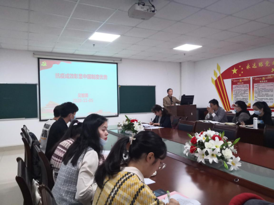 习近平总书记指出,全国疫情防控阻击战取得重大战略成果,彰显了中国共产党领导和我国社会主义制度的显著政治优势。在这次疫情防控斗争中,中国特色社会主义制度的优越性是如何彰显的?围绕这一话题,威廉williamhill党委书记吴智勇为全体学生党员、入党积极分子,教师发展对象等40余人上了一堂题为《抗疫成效彰显中国制度优势》的专题党课。
