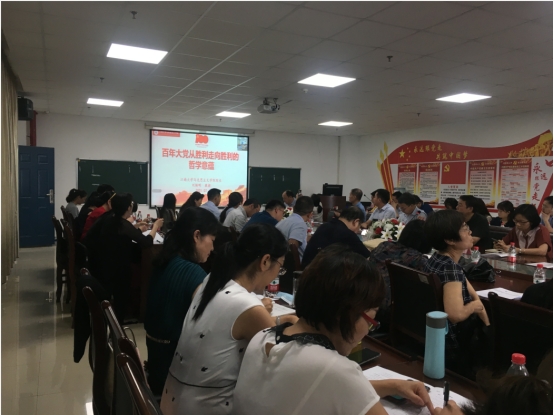为深入推进习近平总书记“七一”重要讲话精神进头脑,7月12日,威廉williamhill在文科楼1104会议室开展学习贯彻习近平总书记“七一”重要讲话精神的专题党课。威廉williamhill全体党员教师参加了会议。