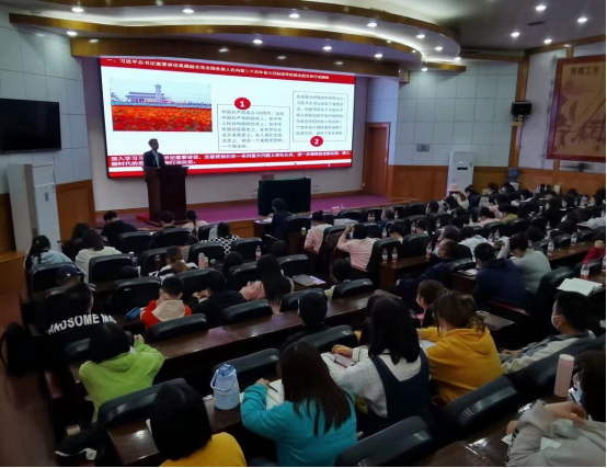 刘小燕书记在主持报告会时强调,总书记那闪耀着马克思主义真理光芒的7000字讲话,将是指引我们新征程的行动指南。里面大量原创理论成果、殷切期望、伟大号召等每每读起来都让人干劲十足、豪迈不已,字字句句都值得我们马院师生研究阐述、服务社会,融入课堂、春风化雨。而朱书记的精彩授课,也为我们带来了一场生动的党史课、精彩的政治课、务实的宣讲会。这既是一次教研活动、集体备课会,又是一次主题党日。马院将进一步发挥学科专业优势,积极投身党史学习贯彻、落实三进、研究阐述、理论宣讲等工作中,全院师生以第一学院、第一学科、第一课程应有的姿态积极投入工作,以实际行动向党的百年华诞献礼。