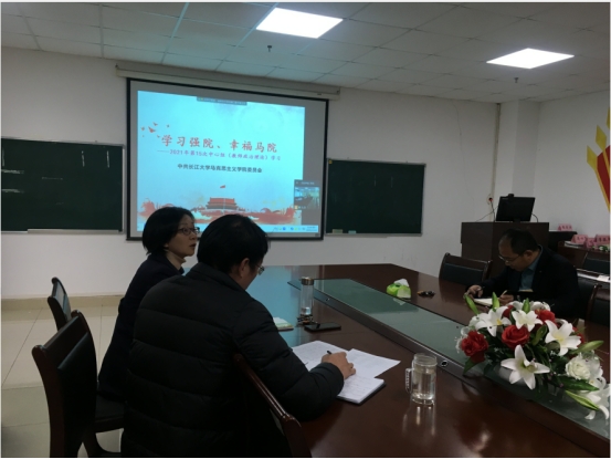 会上,学院党委书记刘小燕传达了习近平总书记在党的十九届六中全会上的重要讲话精神,领学了《中国共产党第十九届中央委员会第六次全体会议公报》。