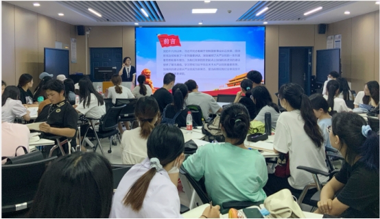 党课的主题是“全面从严治党永远在路上”。刘书记从概念解析入手阐释了全面从严治党的历史沿革、主要原因及战略举措。她指出:“中共党史就是一部全面从严治党的历史,全面从严治党也是新时代党的自我革命的伟大实践。年初中纪委十九届六中全会再次从理论层面的‘九个坚持’和实践层面的‘六个必须’重申了‘从严治党’的价值观和方法论。”在分析了全面从严治党与自我革命的关系后,她从对“四个全面”关系的理解和对全面从严治党的解读两个方面着手,带领同学们深入理解了坚持全面从严治党的原因,她指出:“‘四个全面’已经成为一个战略部署、一种新常态,对推动改革开放和社会主义现代化建设迈上新台阶提供了强力保障。坚持党和加强党的全面领导,坚持党要管党、全面从严治党,这是建党原则和党建方针。”她结合当下世情、国情、党情的百年未有之大变局,鼓励同学们要科学理解党的建设新常态,主动校正心态,调整状态,摆正姿态以适应新时代党建工作新要求。