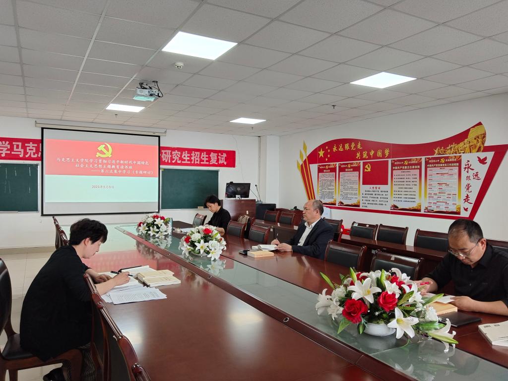 5月5日晚,威廉williamhill学习贯彻习近平新时代中国特色社会主义思想主题教育读书班在文科楼1104室开展第六次集体学习。深入学习了《习近平著作选读》第一卷“加强和改进党的群团工作”等12个篇目内容,逐字逐句研读了《习近平新时代中国特色社会主义思想专题摘编》中有关“实施科教兴国战略,强化现代化人才支撑”的论述。院领导姜学勤、刘小燕等聚焦“三位一体”推进高水平大学建设作了交流发言。