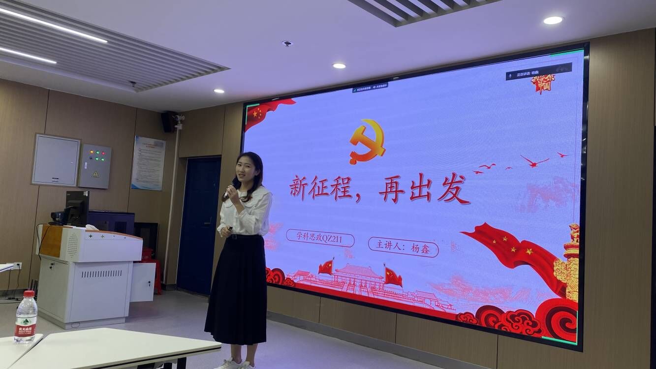 首先,支委翟高带领大家重温了入党誓词,领学了《中国共产党章程》第六章。随后杨锦钰同志讲授了题为“中国共产党为什么行”的微党课,杨申同志领学了党的二十大报告、杨鑫同志分享了学习《习近平著作选读》(第一卷)的心得体会。毕业生吴银霞将习近平总书记给参与“澳门科学一号”卫星研制的澳门科技大学师生代表的回信进行了深情解读,张晓燕等同志则领学了“浦江经验”、浙江“千万工程”经验案例。