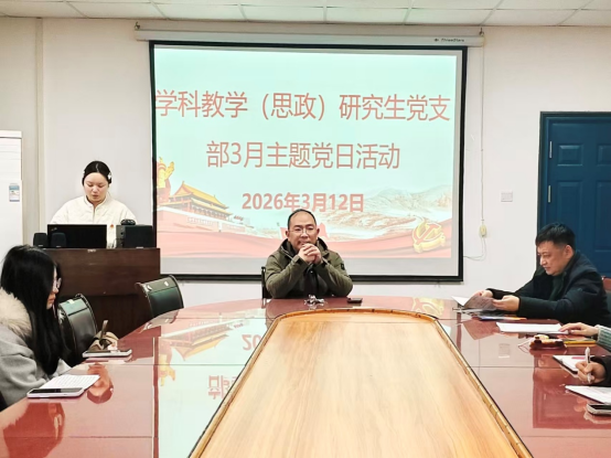 (通讯员 夏丹)为深入学习贯彻习近平新时代中国特色社会主义思想,扎实推进树立和践行正确政绩观学习教育走深走实,3月12日晚,学科教学(思政)研究生党支部在文科楼1102室开展3月主题党日活动,全体党员以及入党积极分子以线上线下相结合的方式参会。
