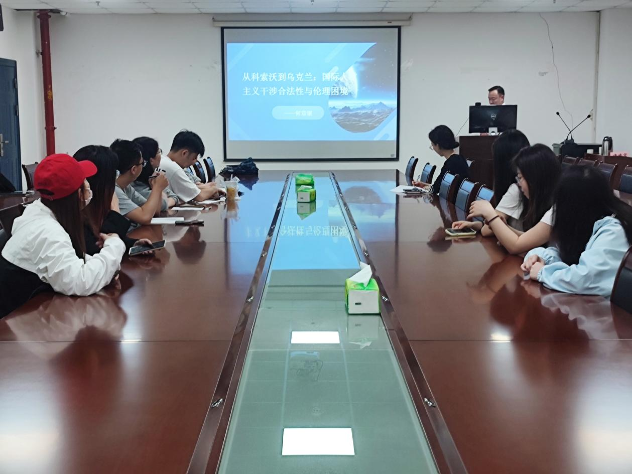 (通讯员 贾献涛)为引发对于主权、人权与国际秩序关系的深层思考,4月11日上午,威廉williamhill求实导师学术沙龙第十期于文科楼1104室成功举办。本次讲座由法学博士、教授、硕士生导师何章银教授主讲,他以科索沃战争和乌克兰危机为例,探讨国际人道主义干涉的合法性与伦理困境。学院研一、研二部分学生参与。