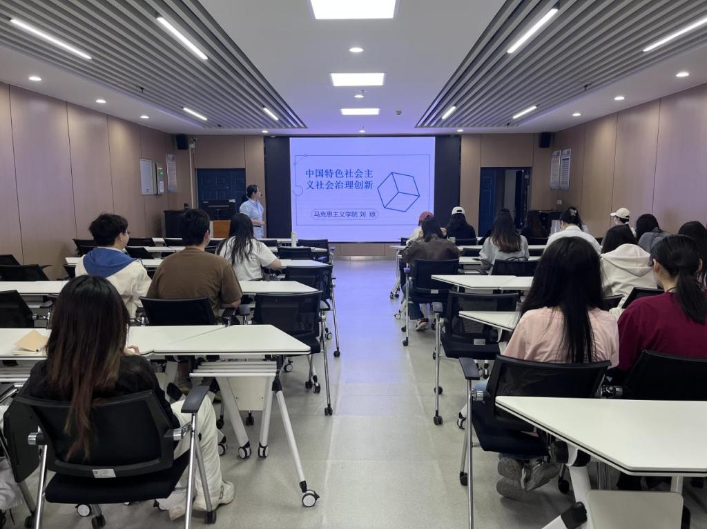 刘琼从社会治理的定义与辨析、社会管理到社会治理的转变和社会治理创新的方法三个方面,以“人治”和“法治”的类比,分辨了社会治理与社会管理的差别,以生动的故事和真实的案例讲解了我国社会从一元管理到多元共治的转变。刘琼通过提问,将学生带入社会工作者的角色中,将学术沙龙变为了师生良性互动的课堂;通过视频展示,让学生们更好了解到“浦江经验”、“湖州经验”等社会治理创新办法,认识到从主体、客体多角度创新治理方法对加强城乡社区治理的重要性。她强调“从社会管理到社会治理,这不仅是我国治理能力的提升,更是社会建设理念、体制和方式的重大变革”。