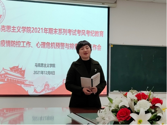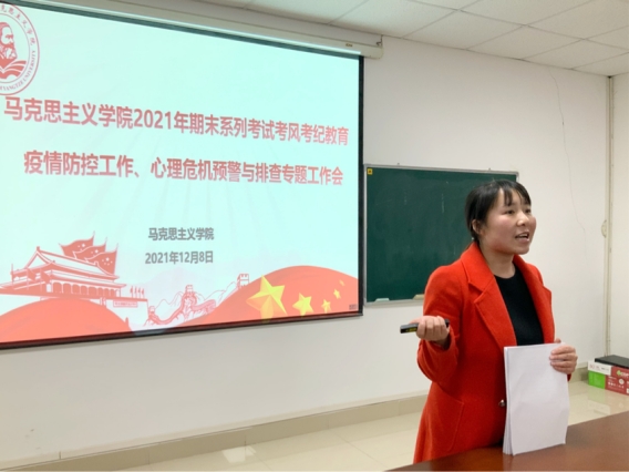 (通讯员、摄影:齐晓杭)12月8日下午6时,威廉williamhill在文科楼1104室召开期末系列考试考风考纪教育及疫情防控工作会议,本次会议由学工办主任张云雾主持,学院党委副书记马小佼、辅导员李敏出席会议。本研各班级的班长、团支书、副班长兼安全委员、心理委员及学生会、研究生会主要成员到场参会。