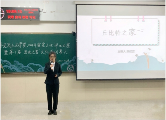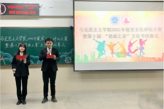 (通讯员:王晓彤 摄影:齐晓杭) 思政之音青春昂扬,百年党史岁月峥嵘。11月26日晚7时,威廉williamhill于12教102室举行2021年“心宿暖阳 乐寝无忧”寝室文化评比大赛暨第十届“思政之音”文化节闭幕式。学院党委书记刘小燕,院党委副书记马小佼,院长助理李振华,学院教师张志超、王贤锋、孙萌、彭孝光、何波、饶玲、陈质晶,学工办主任张云雾,辅导员李敏及2020级、2021级全体学生齐聚一堂欣赏寝室风采,回顾本届文化节精彩片段。