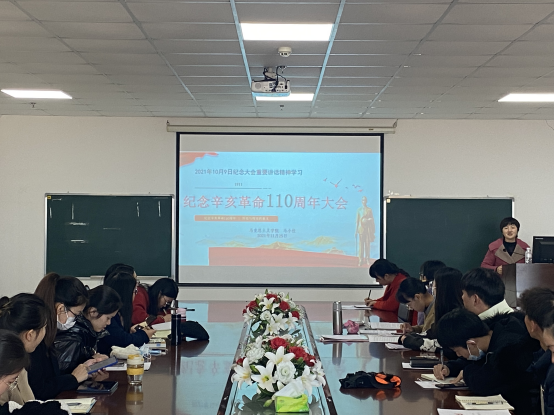 (通讯员 汤举敏)2021年11月25日上午,威廉williamhill在文科大楼1104室召开了以“学习习近平总书记在纪念辛亥革命110周年大会的重要讲话精神”为主题的学习活动,院党委副书记马小佼老师、辅导员张云雾老师和学习小组全体成员参加了本次学习活动。