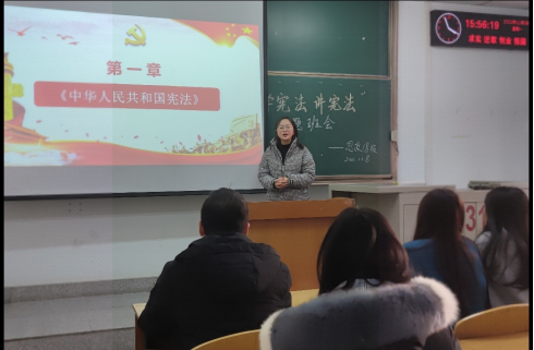 为向同学们普及宪法知识,引导同学们自觉成为宪法的忠实崇尚者、自觉遵守者、坚定捍卫者,11月8日,思政11801、11802班均组织班级同学集中学习宪法相关知识。主讲人侯延伟号召同学们关注宪法,勉励大家努力学习,做未来国家与社会的法治栋梁。