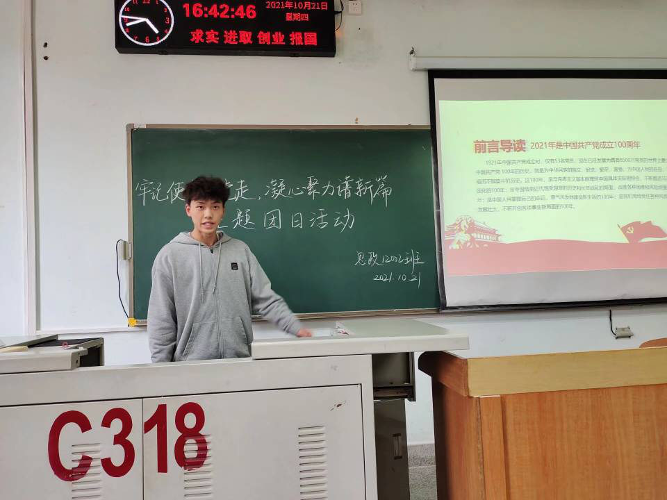 历史的车轮滚滚向前,2021年是建党100周年,是辛亥革命110周年,在新的时代条件下,我们回顾了中国共产党不懈奋斗的艰辛历程,缅怀孙中山先生等革命先驱振兴中华的光辉业绩。作为新时代青年,中华民族伟大复兴的历史重任终将落在我们肩上。思政12101班班主任张云雾老师出席团会并对同学们做出如下期许:“作为青年大学生,我们要带头做到心往一处想、劲往一处使,立足我们的学习、工作实际,我们要时时坚定理想信念、锤炼坚强意志,携手向着中华民族伟大复兴的目标继续奋勇前进!”