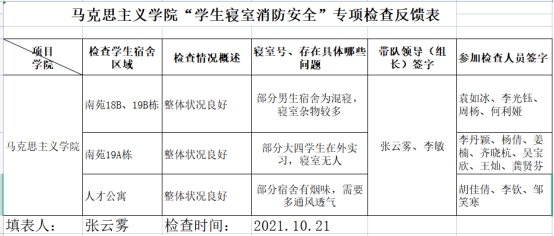 在检查中,学生干部重点排查了宿舍用电情况、违规使用电器情况,宿舍吸烟、使用明火情况以及将电瓶车带进宿舍充电等情况。辅导员提醒同学们注意宿舍用电安全,防范安全隐患。经查,本院无寝室出现违规违纪情况,无重大安全隐患。