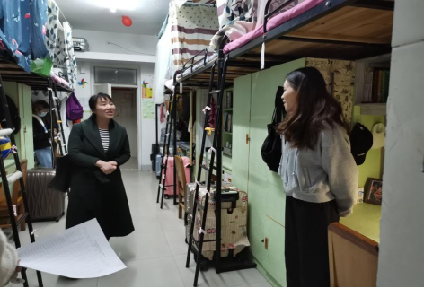 在查寝期间,张老师询问了大四同学的就业、考研情况及生活日常,提醒所有同学注意提高安全意识,防范“非法校园贷”。查寝人员还提醒同学们注意禁止使用违规电器;早晚温差大,要预防感冒;注意寝室常开窗通风,保持室内空气流通等。
