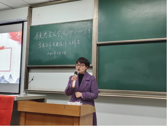 在各班班级代表答辩结束后,党委副书记马小佼对本次活动进行了点评。马书记表示,本次高年级的精彩答辩不仅能展示各班级的特色风采,也为低年级提供了可贵的观摩、学习的机会,有力地促进了班集体增进感情、凝聚力量、相互切磋、取长补短、共同进步。此外,马书记鼓励大家积极创新答辩方式,并向在座的同学们寄予了争做“十佳好学生”的期许,同时也希望大一的班集体和个人早日找准班级建设和学习方向,更有意义地度过大学四年。
