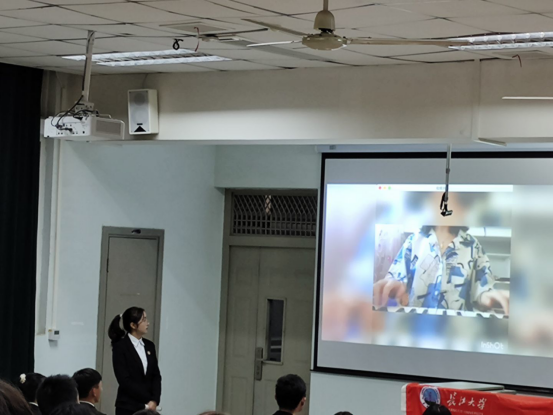 在主持人致开幕词、介绍答辩规则后,思政11902班班长张雨飞同学代表班级进行了答辩,他依次介绍班级基本概况、班级建设及班级风采展示,使大家对这个充满活力与朝气的班集体更为了解。