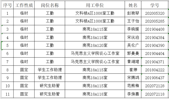 经学生本人申请,学院审核,现将我院2020-2021学年第一学期勤工助学拟录用名单公式如下: