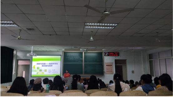 为落实常态化疫情防控形势下的心理适应与行为引领要求,进一步激活我院危机预警与干预网络,提升学生骨干自助与助人的水平,威廉williamhill于2020年9月23日下午在13教D122室组织开展了2020年秋季学生骨干心理健康教育培训。心理专干张云雾老师为全院本、研班级的班长、团支书、心理委员、安全委员、寝室长等50余名高年级学生骨干做了题为《自助与互助——高关怀学生的识别与关怀》的专题培训。
