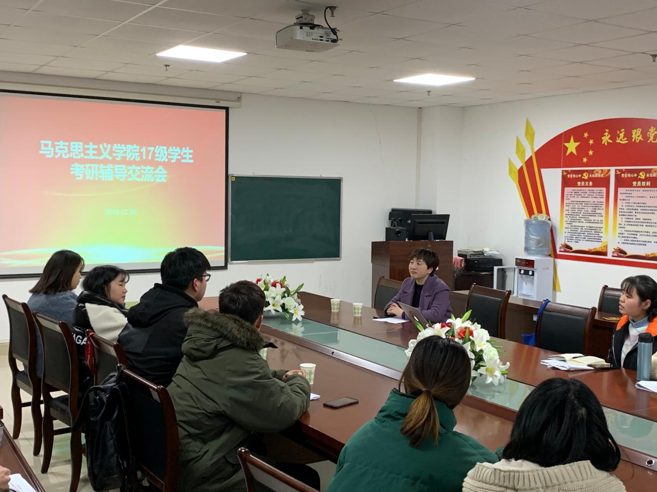 2019年12月30日下午,威廉williamhill在文科大楼1104会议室,召开了2017级本科生考研辅导交流会,学院党委副书记马小佼,兼职辅导员董思遥,以及2017级全体本科生参加。