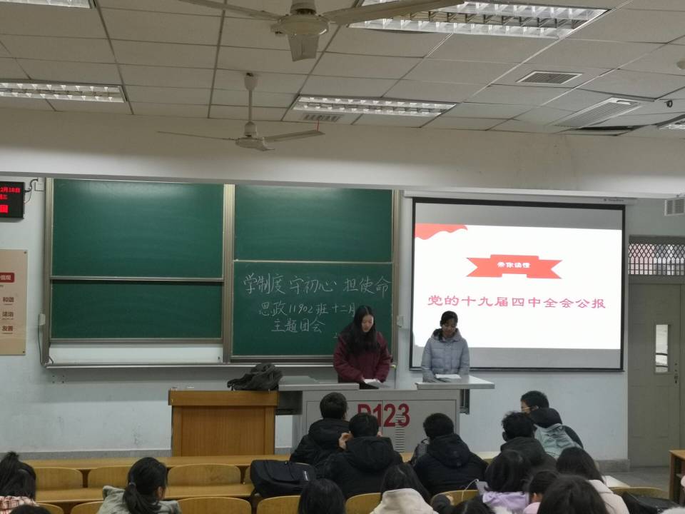 12月,结合学校“学制度,守初心,担责任”主题教育安排,威廉williamhill认真组织开展了十九届四中全会精神学习团会。