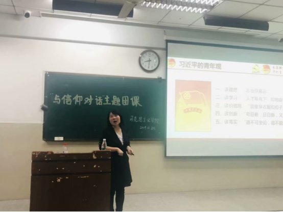 我院利用校内校外两个平台,理论与实践相结合、线上与线下相结合、户内与户外相结合的活动形式,开展本次4月团会。在“与信仰对话”主题宣讲活动中,我院团委书记张云雾老师面向全体团员宣讲以“坚定理想信念,争做有志青年”为主题的团课。
