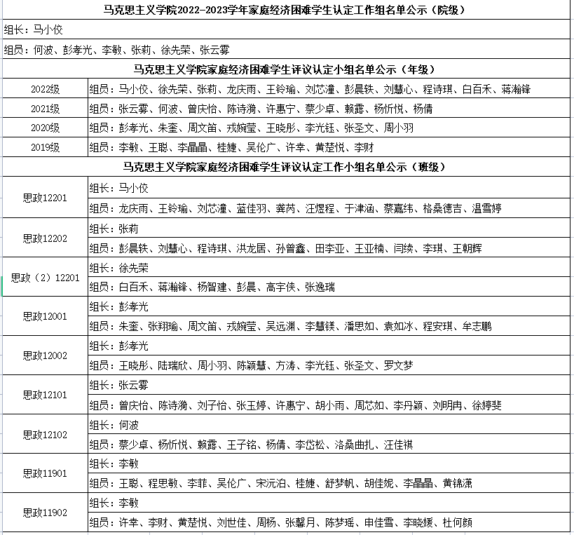 根据william威廉中文学生工作处《关于做好2022-2023学年家庭经济困难学生认定工作的通知》,结合学院实际,现将我院2022-2023学年家庭经济困难学生认定评议工作组成员名单公示如下: