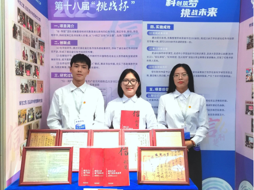 (第十八届挑战杯特等奖——“信·荆楚”团队成员于潇浚同学〈右一〉)