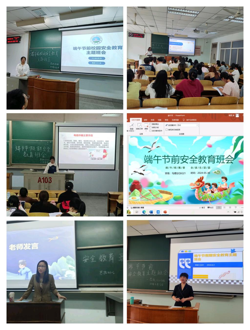 班主任从假期防溺水、防欺凌、防诈骗、交通、饮食、网络、消防、心理健康等方面对学生进行安全教育,并结合典型案例开展了警示教育,安全委员统计了班级学生假期去向,督促离校同学办理了请假手续。