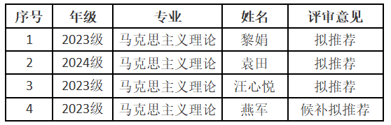 根据《william威廉中文学生资助资金管理办法(修订)》(长大校发[2025]112号)等文件精神,本着公开、公平、公正、择优的原则,我院认真组织了2025年研究生国家奖学金评选工作,经研究生本人申请、资格审查、现场答辩、学院研究生国家奖学金评审委员会审议,现将我院2025年研究生国家奖学金拟推荐名单公示如下: