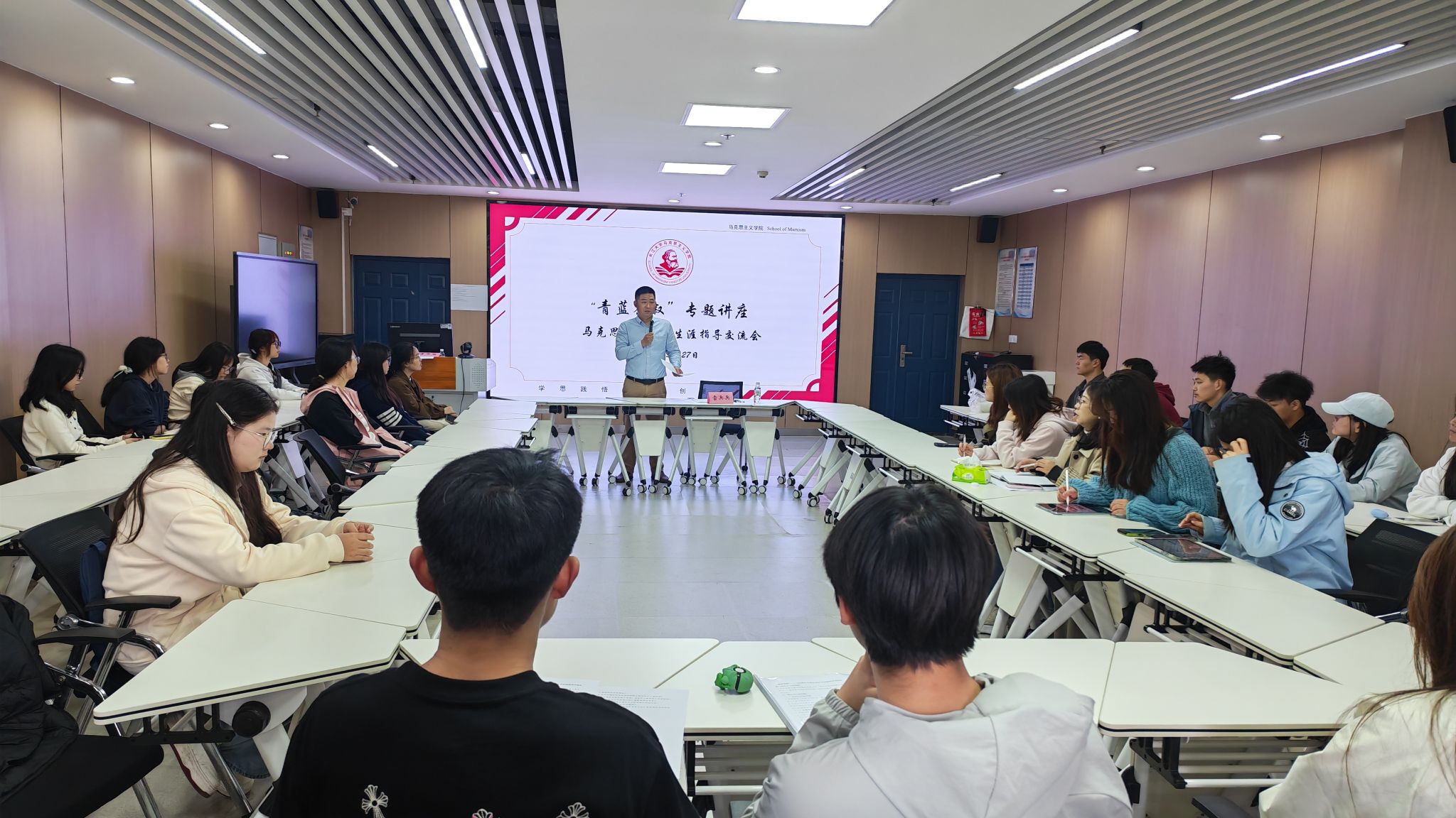 针对研一学生关注的就业问题,雷兵兵博士表示,各专业发展路径各有特色,同学们要立足自身实际条件,结合个人兴趣与特长理性选择,找准适合自己的发展赛道。面对本科新生的专业认知困惑,他着重强调,自学能力、写作能力与理解能力是学好马克思主义理论的核心素养,需要在日常学习中持续锤炼、不断提升,他鼓励大家坚定目标、勇敢追梦。对于新转专业的同学,他建议拓宽阅读视野,潜心研读马克思主义经典著作,结合实际案例阐释了课外阅读对夯实专业基础、提升理论素养的重要意义。谈及自身跨专业考研的初衷,他坦言兴趣是前行的核心动力。针对部分学生存在的迷茫焦虑情绪,他给出务实建议,倡导大家将“茫”转化为“忙”,拒绝空想、主动行动,在实践中积累收获、明确方向,以清晰目标引领自身成长。