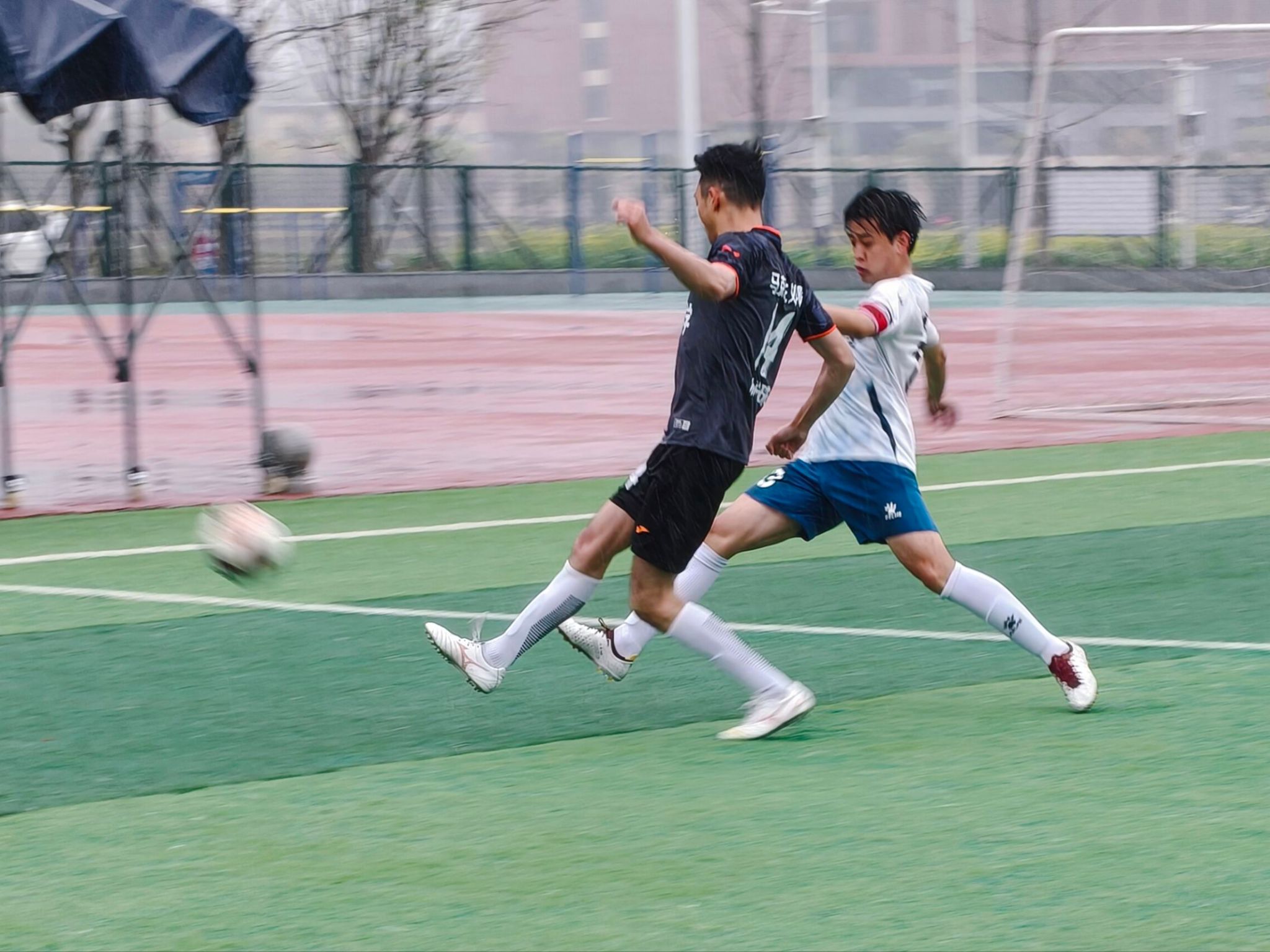 赛场上,马院球员身姿矫健、斗志昂扬,以默契配合、精准攻防尽显青春竞技风采。其中马院对阵电信学院的比赛尤为动人:虽阴雨连绵、场地湿滑泥泞,但球员们仍斗志昂扬。他们在雨幕中奋力奔跑、顽强拼抢,用无畏身影完美诠释了永不言弃的体育精神。其余场次中,球员们同样全力以赴,比分胶着时沉着防守,落后时全力反扑,进球时相拥庆祝。场边师生的呐喊助威声此起彼伏,充分展现了马院学子团结向上、奋勇争先的精神风貌。